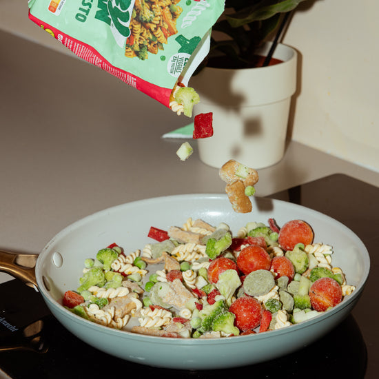 SCHNELL EINGEFROREN, UM DEN VOLLEN GESCHMACK UND ALLE NÄHRSTOFFE ZU BEWAHREN – GANZ OHNE KONSERVIERUNGSSTOFFE! NUR DAS BESTE ALSO.