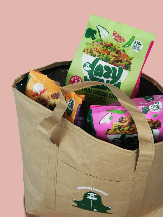 Unsere Lazy Vegan Kühltasche ist nicht nur ideal, um deine Mahlzeiten kalt zu halten - sie ist auch ein echter Hingucker im Supermarkt (oder am Strand, oder auf der Straße, oder... eigentlich überall).